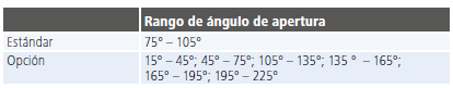 O ângulo de abertura pode ser ajustado continuamente dentro das faixas indicadas.